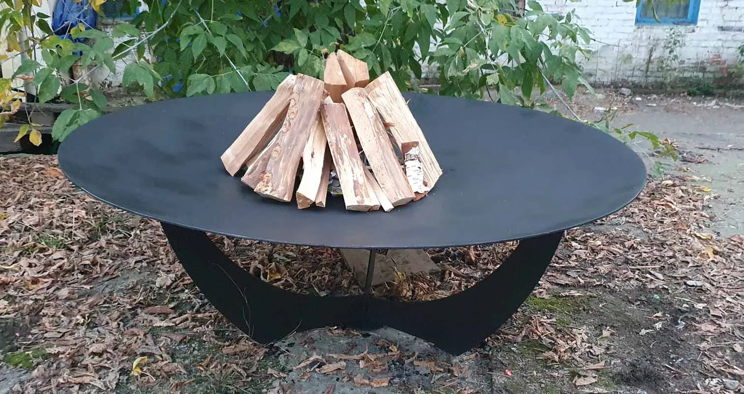 Диаметр костровой чаши 92 сантиметра, глубина чаши 10 сантиметров, толщина метала 6 миллиметров. Материал изготовления - конструкционная сталь марки Ст3.
